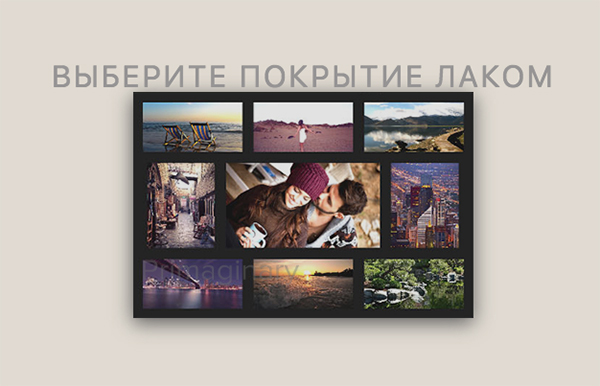 Выбираем тип лакировки. Готовые холсты без поркытия смотрятся не менее интересно. Но если вы остановите свой выбор на коллаже с защитным покрытием, они покрываются профессиональными оригинальными составами на водной основе для послепечатной обработки. Эти лаки создавались специально для интерьерной печати. Благодаря водной основе они соответствуют европейским стандартам и требованиям экологической безопасности. С помощью таких лаков поверхности коллажа можно придать глянцевый блеск, матовый или шелковистый эффект. Кроме того, он защищает поверхность от механических повреждений, выгорания, влаги, тем самым продлевая жизнь фотоколлажу.